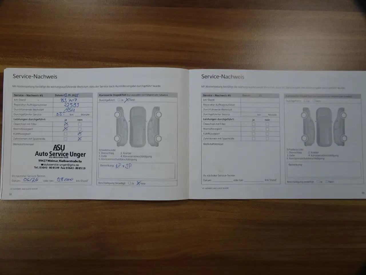 Servicehistorie: Ja