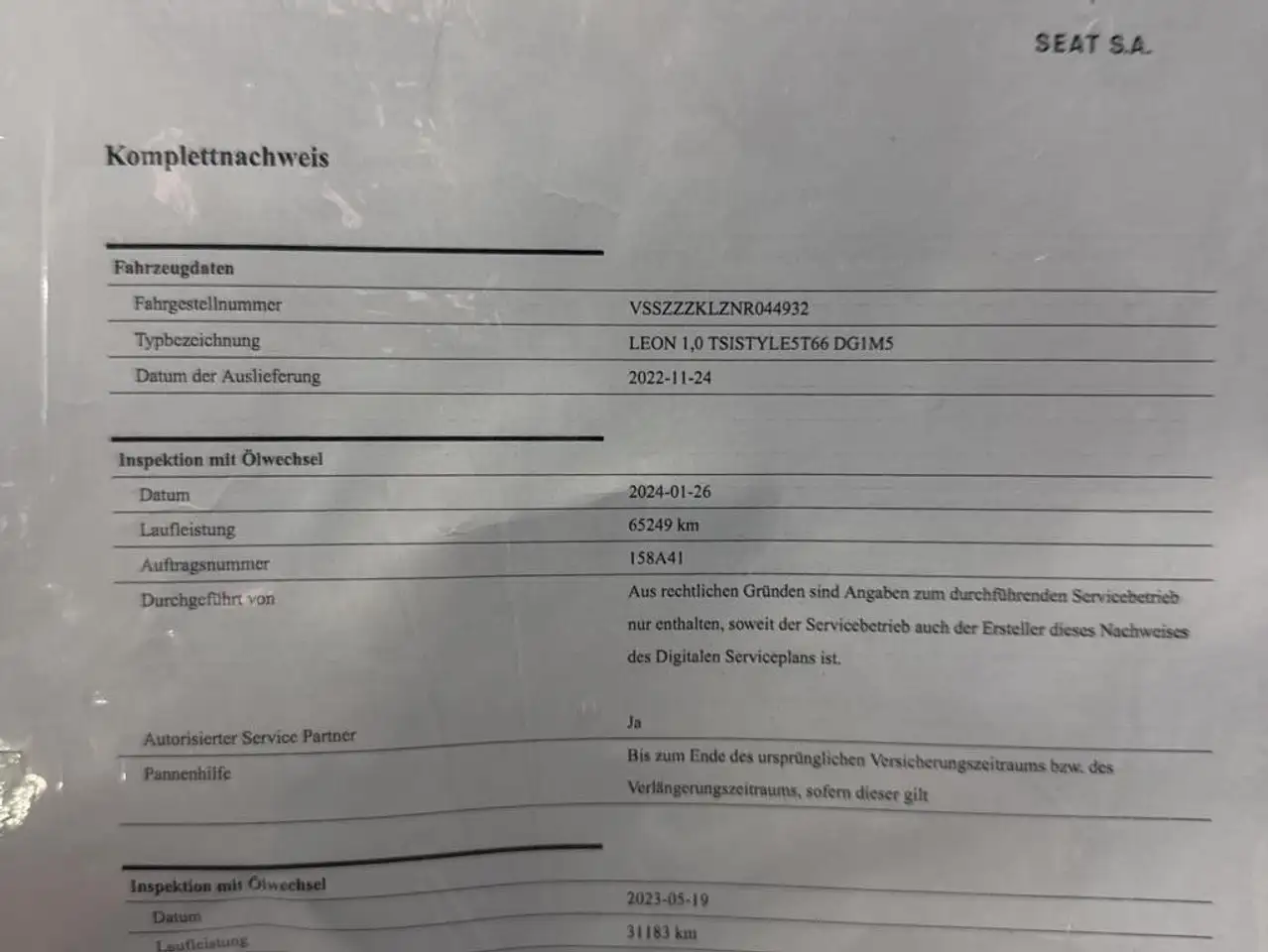 Servicehistorie: Ja