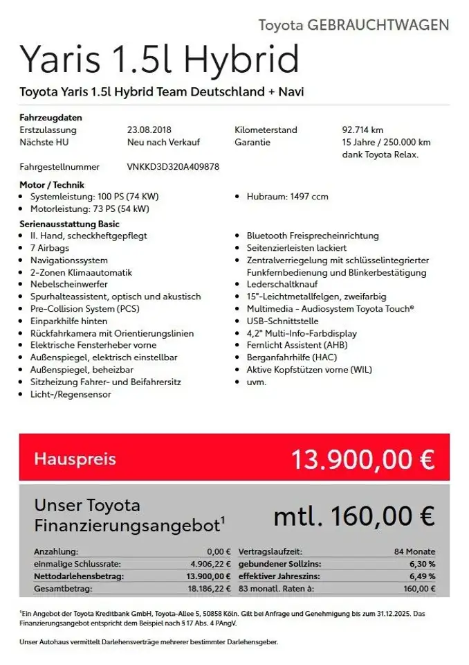 Toyota Yaris Hybrid Team Deutschlang + Navi
