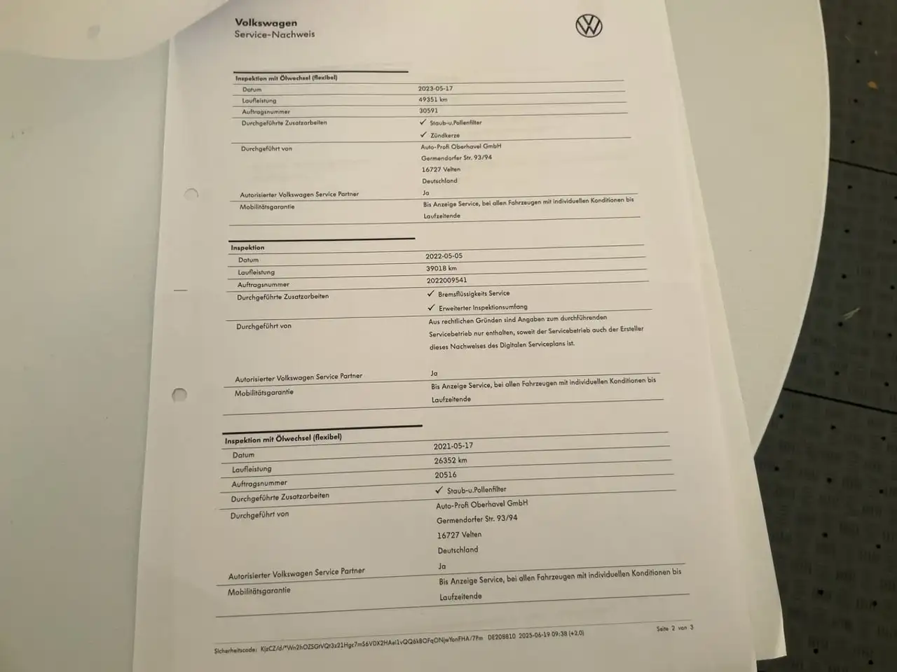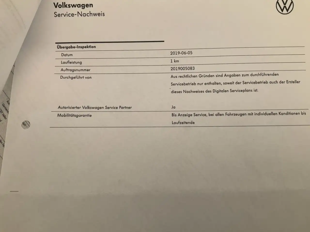 Servicehistorie: Ja