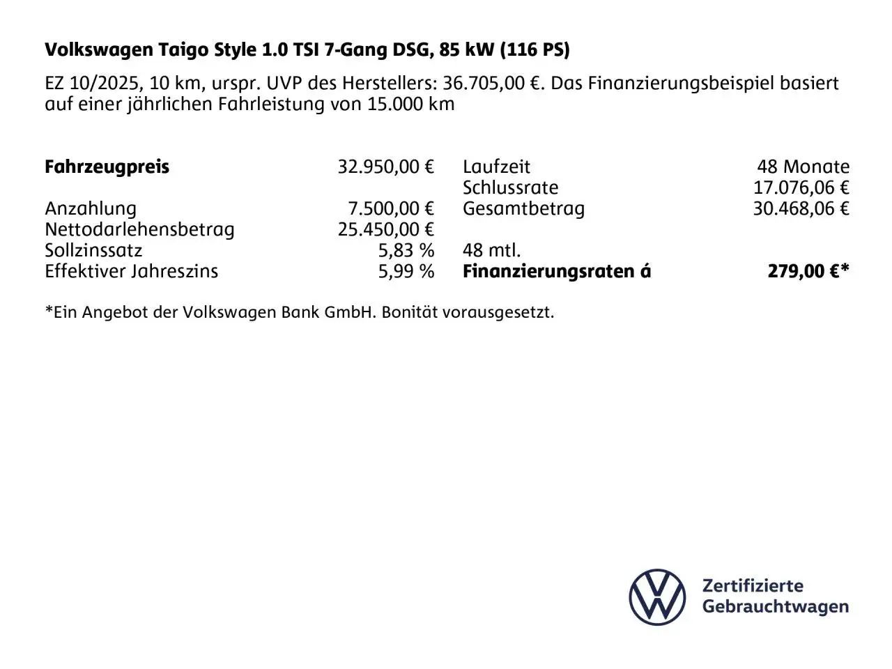 Volkswagen Taigo Style 1.0 TSI 7-Gang DSG Bluetooth Navi LED
